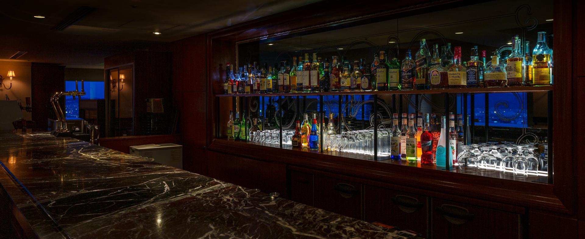 心酔わせる最上階の展望。タワー棟のバー&ラウンジへは、シースルーエレベーターがご案内。